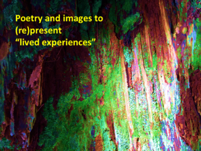 Poetic inquiry practices fall under three main categories: autobiographical or auto-ethnographical studies; poetic transcription and representation of participant interviews or other data; and theoretical poetry that addresses various scholarly issues (Prendergast 2006). The present study falls under the first category, that of autobiographical or auto-ethnographical studies, with the use of our own poetry and our own (for the most part) photographs.